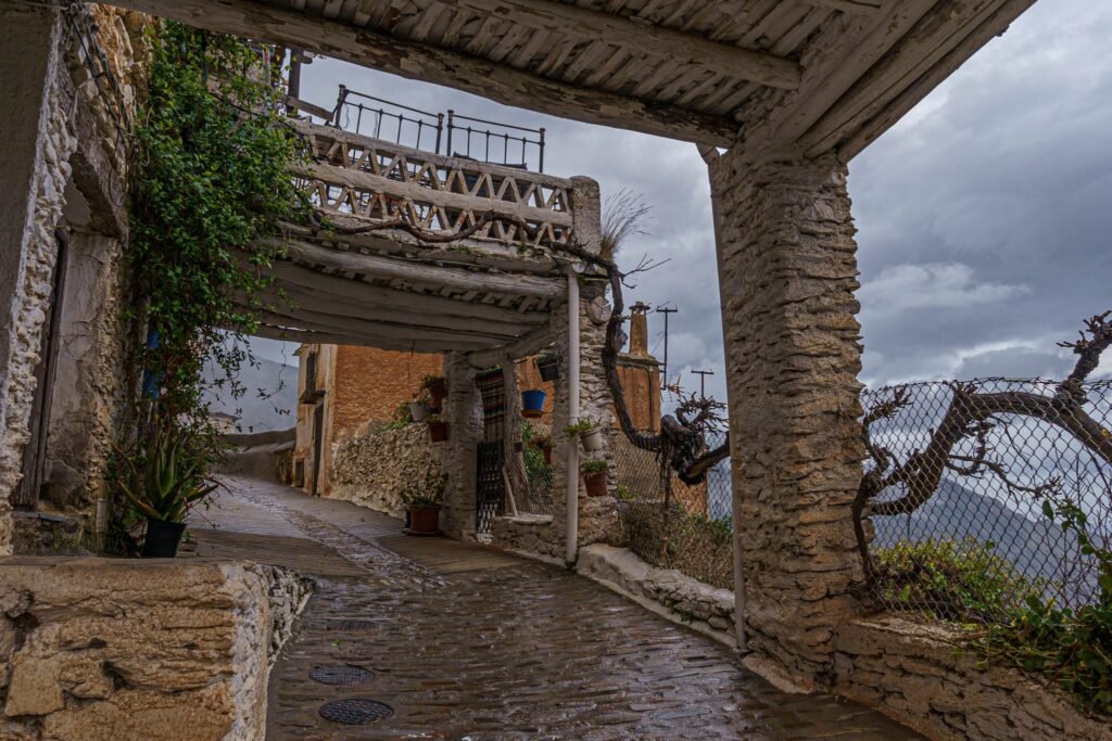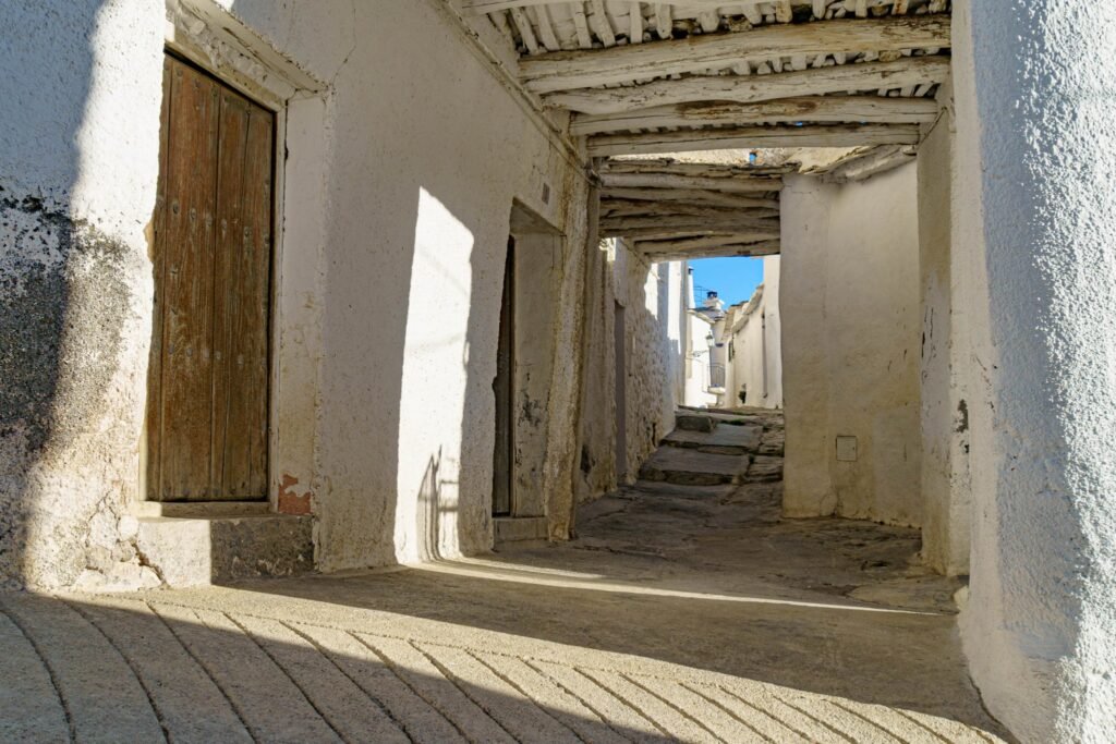 Capileira es una impoluto pueblo blanco entre montañas, colgada a más de 1.450 metros de altitud. En invierno, las cumbres de Sierra Nevada se cubren de nieve y crean una estampa de película; en verano, el verde de las montañas contrasta con las fachadas encaladas y los tejados planos típicos de la arquitectura alpujarreña. Pasear por sus calles empinadas, llenas de tinaos, chimeneas singulares y pequeñas acequias, es viajar en el tiempo y sentir la esencia de un auténtico pueblo de montaña.