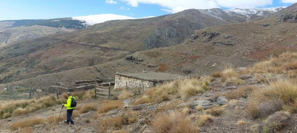El itinerario comienza en Capileira (en torno a 1.450 m). Atravesamos el pueblo hacia la parte alta para tomar el camino de la Cebadilla. Dejando atrás las últimas casas, seguimos por un antiguo camino de herradura, todavía utilizado por vecinos que suben a sus labores y ganado en la sierra.
